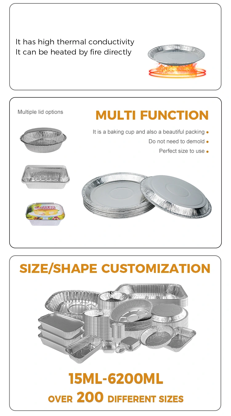 Το αλουμινένιο αλουμινόχαρτο Yunchu προσφέρει 10 ίντσες δοχεία από αλουμίνιο αλουμινίου 10 ιντσών με αριθμό μοντέλου 13110. Με χωρητικότητα περίπου 695 ml (περίπου 24,5 ουγκιές), είναι κατάλληλο για ψήσιμο πίτσα χωρίς να κολλήσει, εύκολο να απελευθερωθεί από το καλούπι και δεν έχει οσμή. Επιπλέον, ο ανυψωμένος σχεδιασμός της άκρης εμποδίζει τα συστατικά να διαρρέουν και να αυξάνουν την πρακτικότητα. Μπορούμε επίσης να παρέχουμε υπηρεσίες προσαρμογής λογότυπων για να σας βοηθήσουμε να εμβαθύνετε την εντύπωση των πελατών σας και να ενισχύσετε την αναγνωρισιμότητα της επωνυμίας σας.