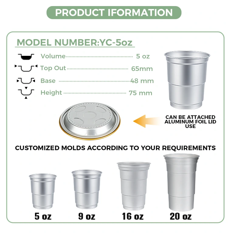 Το ανακυκλώσιμο κύπελλο αναψυκτικού αλουμινίου 5 ουγκιών του προμηθευτή αλουμινόχαρτου Yunchu, με απλή και κομψή μεταλλική υφή από αλουμίνιο, καθιστά αυτό το ποτήρι αναψυκτικού κατάλληλο για ένα ευρύ φάσμα σεναρίων, καλύπτοντας πολλούς τομείς όπως εμπορικές δραστηριότητες, συγκεντρώσεις αναψυχής, εκδηλώσεις μεγάλης κλίμακας κ.λπ., καθιστώντας την προτιμώμενη λύση για τη συσκευασία σεναρίων:-based: