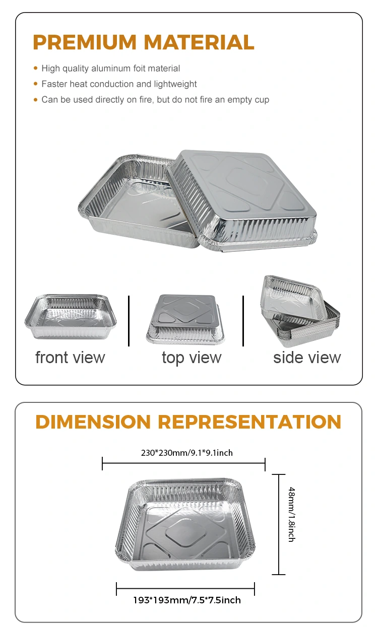 Ο προμηθευτής αλουμινίου αλουμινίου Yunchu παράγει μίας χρήσης μπάρμπεκιου μπάρμπεκιου από ασημένια δοχεία αλουμινίου αλουμινίου, τα οποία είναι κατάλληλα για παραγγελίες τροφοδοσίας, μικρά κέικ σε αρτοποιεία, οικογενειακά σνακ και εστιατόρια. Οι ασφαλείς και υγιείς, οι ιδέες για τα τρόφιμα δεν είναι περιορισμένες, τα σκεύη κουζίνας είναι ένας καλός συνεργάτης για να μαγειρεύουν εύκολα τα τρόφιμα, οι φριτέζες και ο άλλος εξοπλισμός είναι ανθεκτικοί στη θερμότητα και ανθεκτικά στο πετρέλαιο, εύκολο να ψήνουν, να μπορούν να πετάξουν χωρίς να χρησιμοποιούν, να καθαρίζονται και να είναι η ενσωματωμένη. Και ο σχεδιασμός της άκρης είναι στοχαστικός για να αποφύγετε το ξύσιμο των χεριών σας. Πολλαπλά μεγέθη είναι διαθέσιμα για να διαλέξετε για να ταιριάζουν σε διαφορετικά σενάρια χρήσης. Εάν έχετε οποιεσδήποτε ερωτήσεις ή χρειάζεστε περισσότερες πληροφορίες, μπορείτε να επικοινωνήσετε μαζί μας.