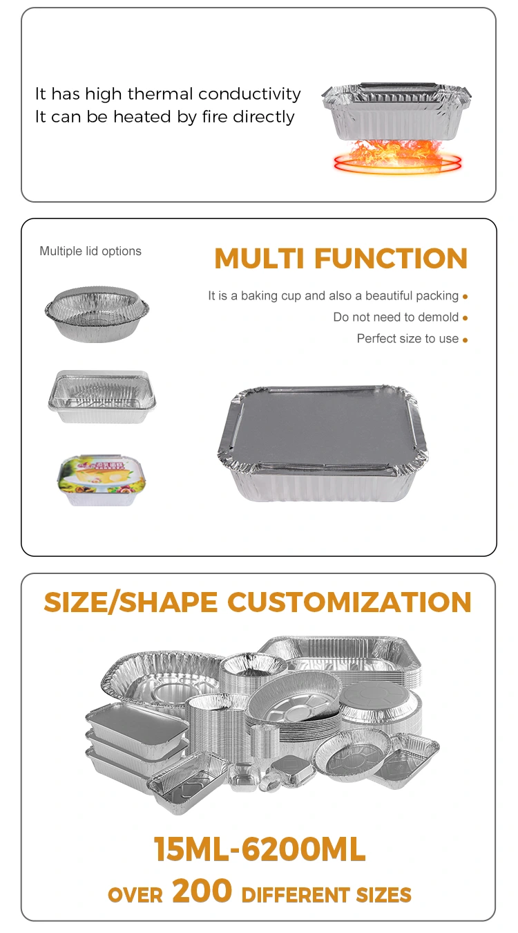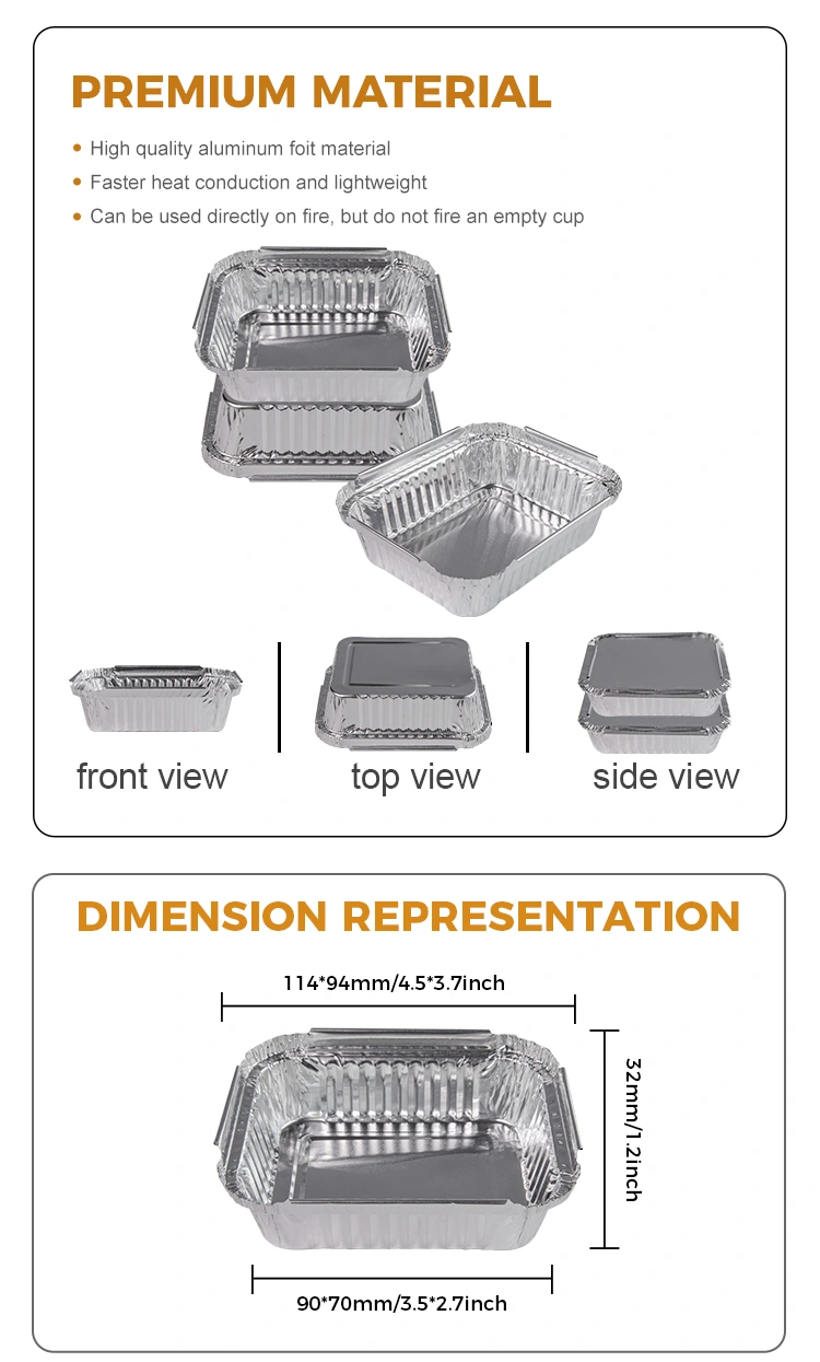 Επιπλέον, αυτό το δοχείο από ψωμιά μίας χρήσης μπάρμπεκιου ασημένιου αλουμινίου αλουμινίου είναι επίσης εξαιρετικά ασφαλής, καθώς μπορεί να χρησιμοποιηθεί κανονικά κάτω από μια ανοιχτή φλόγα χωρίς να ανησυχείτε για τους κινδύνους πυρκαγιάς καθόλου. Ταυτόχρονα, η εξαιρετική αντίσταση και σφράγιση της θερμοκρασίας παρέχει επίσης εγγύηση για την ασφαλή μεταφορά τροφίμων, επιτρέποντας στους καταναλωτές και τους πελάτες να το χρησιμοποιούν με μεγαλύτερη εμπιστοσύνη.
