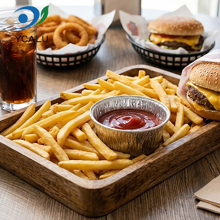Yunchu Αλουμινόχαρτο Προμηθευτής Στρογγυλής σάλτσας Air Fryer Ασημένιο Δοχείο αλουμινίου Αλουμινόχαρτου Υλικό αλουμινίου ποιότητας τροφίμων, χωρίς οσμή, χωρίς υπολείμματα βαρέων μετάλλων, συμμορφώνεται με τα πρότυπα επαφής τροφίμων, υψηλής καθαρότητας και σταθερές χημικές ιδιότητες. Ακόμα κι αν είναι γεμάτο με όξινες σάλτσες και ζεσταθεί σε υψηλές θερμοκρασίες, δεν θα απελευθερώσει επιβλαβείς ουσίες και μπορείτε να αισθάνεστε απόλυτα ασφαλείς όταν έρθετε σε άμεση επαφή με το φαγητό. Το προϊόν έχει περάσει την πιστοποίηση ποιότητας τροφίμων FDA και ακολουθεί αυστηρά τα πρότυπα που σχετίζονται με το FDA 21 CFR, μετά από επαγγελματικές δοκιμές μετανάστευσης και ανίχνευση βαρέων μετάλλων, η περιεκτικότητα σε επιβλαβείς ουσίες όπως ο μόλυβδος και το κάδμιο είναι πολύ κάτω από το όριο ασφαλείας και τα προσόντα είναι πλήρη. Είτε πρόκειται για οικιακή είτε για εμπορική χρήση, μπορείτε να επιλέξετε με ηρεμία. Χρησιμοποιήστε το για να μοιράσετε σάλτσες για το μαρινάρισμα κρεάτων, σάλτσες για σαλάτες για λαχανικά και πιάτα με ξύδι για να βυθίσετε τα ζυμαρικά. Οι μερίδες είναι σωστές χωρίς σπατάλη. Μπορεί επίσης να αποφύγει τη μεταφορά οσμών και μπορεί να αποθηκευτεί τακτοποιημένα στο ψυγείο χωρίς να πιάνει χώρο. Οι έμποροι σε πακέτο το χρησιμοποιούν για να αποθηκεύουν σάλτσες, οι οποίες είναι σφραγισμένες και στεγανές και παραδίδονται στους πελάτες καθαρά. Είτε πρόκειται για κέτσαπ, γλυκιά σάλτσα τσίλι ή παχύρρευστη σάλτσα σουσαμιού, δεν θα υπάρχει αμηχανία διαρροής και λερώματος του φαγητού. Ακόμη και για υπαίθρια πικνίκ και κάμπινγκ, μπορείτε να φέρετε μερικά μαζί σας και να τα χρησιμοποιήσετε για να κρατάτε σάλτσες για ντιπ. Είναι ελαφρύ και δεν πιάνει χώρο. Μπορείτε να το πετάξετε αμέσως μετά τη χρήση. Δεν χρειάζεται να μεταφέρετε ένα σωρό βρώμικα δοχεία πίσω στο σπίτι. Αφορά κυρίως την ευκολία και την απροβλημάτιστη.