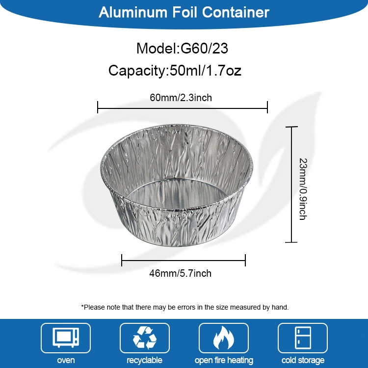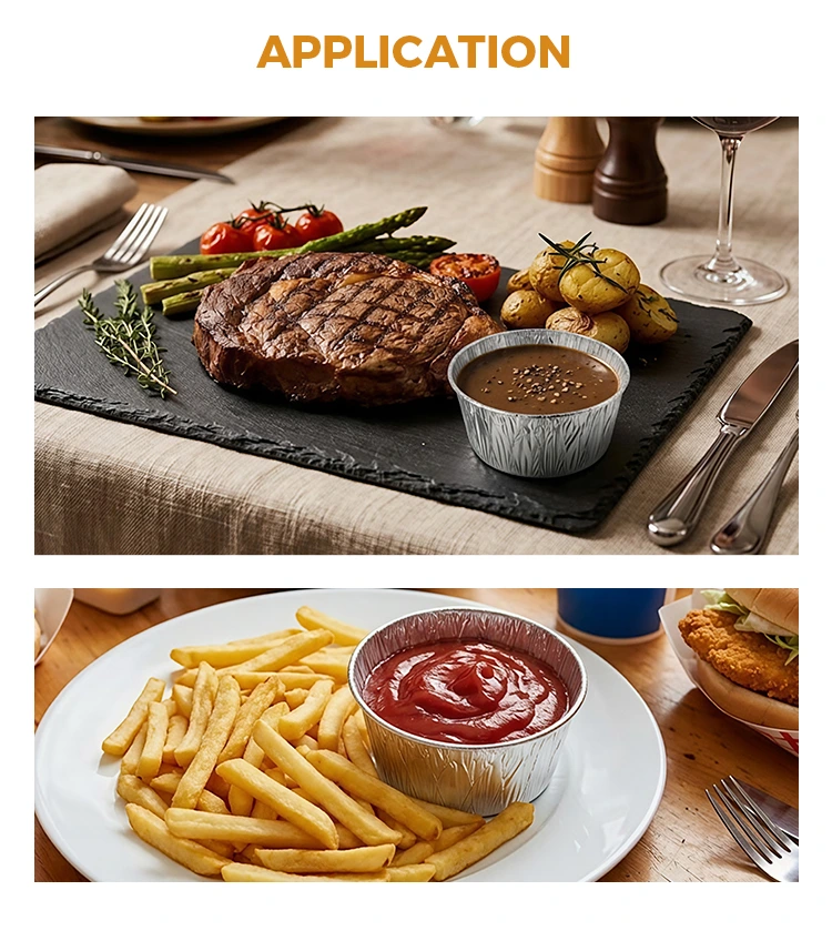 • Στρογγυλή σάλτσα μιας χρήσης Ασημένιο αλουμινόχαρτο Δοχεία τροφίμωνΣτρογγυλή σάλτσα μιας χρήσης Ασημένιο αλουμινόχαρτο Δοχεία τροφίμων