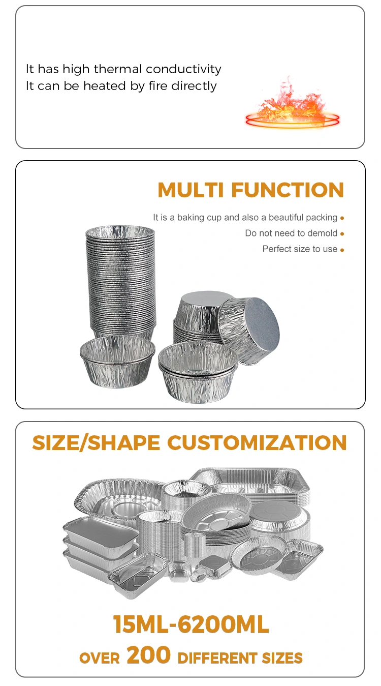 Yunchu Αλουμινόχαρτο μίας χρήσης Προμηθευτής στρογγυλής σάλτσας Air Fryer Ασημένιο δοχείο με φύλλο αλουμινίου Το αλουμινόχαρτο έχει παχιά υφή και δεν καταστρέφεται ή παραμορφώνεται εύκολα. Ακόμα κι αν περιέχει παχύρρευστες σάλτσες και σούπα συστατικά, μπορεί να κρατηθεί σταθερά χωρίς διαρροή ή κατάρρευση. Οι άκρες έχουν ενισχυθεί και πιεστεί, καθιστώντας τις λείες στην αφή, δεν θα χαράξουν τα χέρια σας και είναι πιο ασφαλείς στο χειρισμό. Σχεδιασμός μιας χρήσης, πετάξτε μετά τη χρήση, γλιτώνοντας τον κόπο να καθαρίσετε το δοχείο. Μπορεί όχι μόνο να βελτιώσει την αποτελεσματικότητα, αλλά και να διατηρήσει το περιβάλλον καθαρό και τακτοποιημένο σε σενάρια όπως συσκευασίες σε πακέτο, καταστήματα εστίασης, κάμπινγκ και πικνίκ. Επιπλέον, το υλικό αλουμινόχαρτου είναι ανακυκλώσιμο, πράσινο και φιλικό προς το περιβάλλον και δεν θα προκαλέσει υπερβολική περιβαλλοντική επιβάρυνση εάν απορριφθεί μετά τη χρήση, λαμβάνοντας υπόψη την ευκολία και την προστασία του περιβάλλοντος.