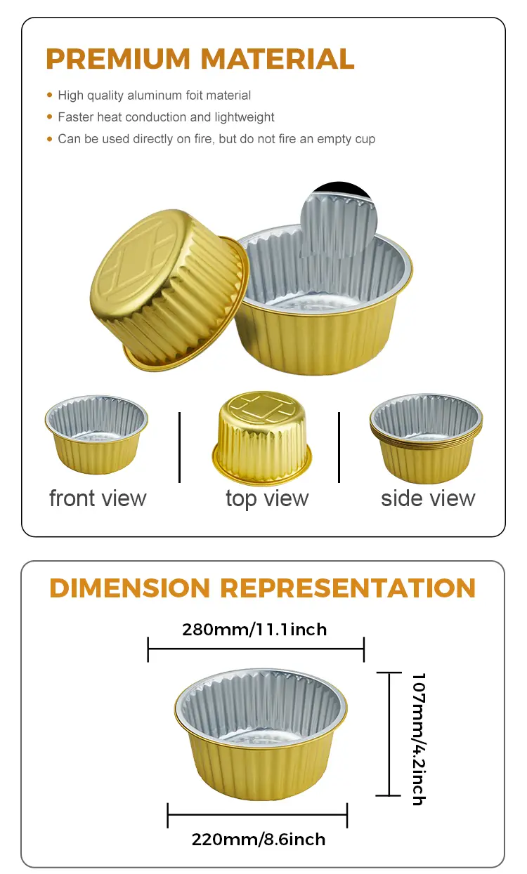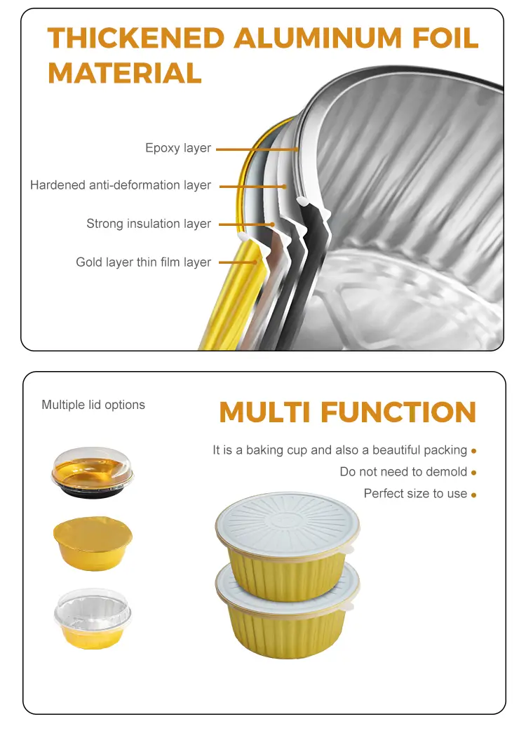 Yunchu αλουμινίου αλουμινίου μίας χρήσης που μπορεί να σφραγίσει το χρυσό στρογγυλό στρογγυλό αλουμινένιο αλουμινόχαρτο μοντέλο CF5000 τροφοδοσία χονδρικής έχει ένα ευρύ φάσμα χρήσεων, μπορεί να χρησιμοποιήσει το καλυμμένο αλουμινένιο αλουμινόχαρτο για μια ποικιλία από καταστήματα, όπως τα μεγάλα καταστήματα, τα σπίτια, τα δοχεία, κλπ. Οι δραστηριότητες τροφοδοσίας, τα καταστήματα τροφοδοσίας αυτοεξυπηρέτησης κ.λπ., τα δοχεία αλουμινίου που μπορούν να σφραγιστούν από το χρυσό αλουμινίου από ένα φώτα από αλουμινένιο αλουμινίου υψηλής ποιότητας, από αλουμίνιο αλουμινίου 8011-0, δίσκο ψησίματος μίας χρήσης με καπάκι είναι ανθεκτικό, δεν είναι εύκολα τρυπημένο ή κατεστραμμένο. Το υλικό επιτρέπει την ομοιόμορφη κατανομή της θερμότητας, την καλή συγκράτηση θερμότητας, την κολλητικότητα, την καύση, την αδιάβροχη και την ανθεκτική για το πετρέλαιο, δεν χρειάζεται να καθαρίσετε, να μην επιβαρύνετε τους λεκέδες πετρελαίου. Οι ομαλές άκρες δεν βλάπτουν τα χέρια σας, εξασφαλίζοντας ότι τα προετοιμασμένα πιάτα είναι πλήρως μαγειρεμένα. Το αλουμινόχαρτο έχει τελειώσει σε ένα κομψό χρυσό χρώμα που ενισχύει την παρουσίαση και συμπληρώνει την κουζίνα ή τη διακόσμηση της εκδήλωσης.