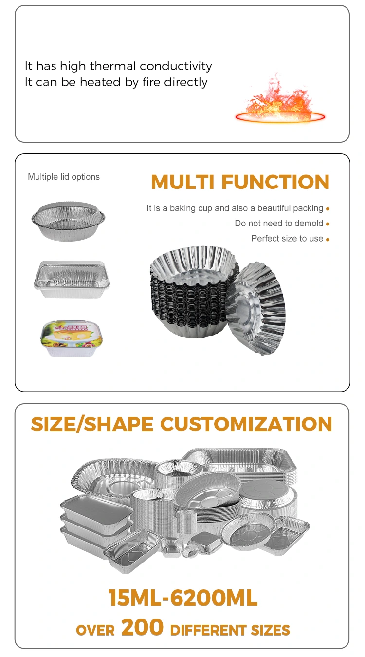 Yunchu αλουμινίου αλουμινίου αυγό τάρτα τοστ ψήσιμο ασημιού αλουμινίου αλουμινίου δοχείο τροφίμων, είτε είναι σπιτικά είτε εμπορικά παράγονται, για να καλύψουν διαφορετικές ανάγκες. Το φιλικό προς το περιβάλλον, το ασφαλές υλικό και το ευπροσάρμοστο σχεδιασμό του καθιστούν την ιδανική επιλογή για τους λάτρεις του ψησίματος.