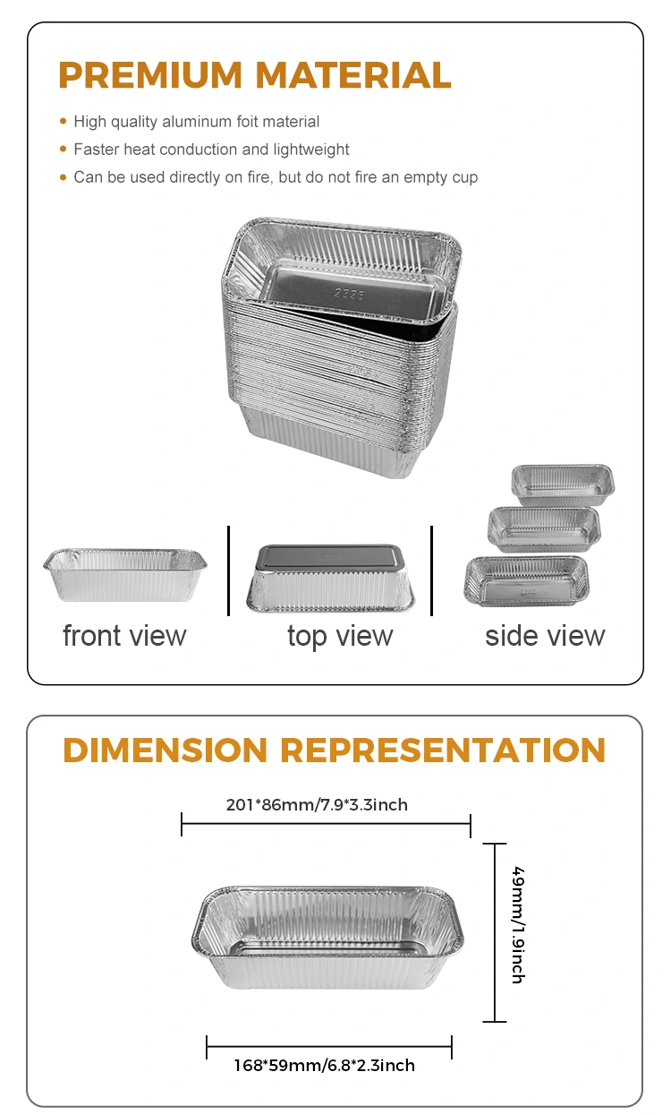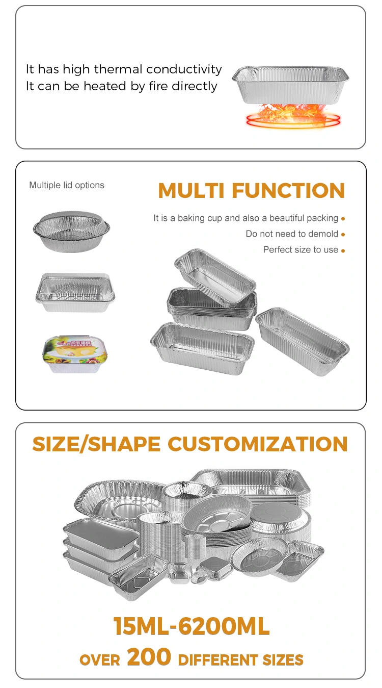 Το 2325 ορθογώνιο φριτέζα Takeaway Silver Foil δοχείο που παρέχεται από τον προμηθευτή αλουμινίου αλουμινίου Yunchu είναι κατάλληλος για διάφορες περιπτώσεις, είτε πρόκειται για υπαίθριο μπάρμπεκιου είτε για οικογενειακή συγκέντρωση. Οι έμποροι μπορούν να προσαρμόσουν τα μοτίβα και να τα εκτυπώσουν ανάλογα με τις ανάγκες τους, καθιστώντας αυτά τα δοχεία μια μοναδική επιλογή για τη συσκευασία Takeaway, η οποία υποστηρίζει την ανοικτή θέρμανση της φλόγας και τη θέρμανση του λαμπτήρα πετρελαίου, διεξάγει τη θερμότητα ομοιόμορφα, εξασφαλίζοντας ότι το φαγητό θερμαίνεται ομοιόμορφα και δεν κολλάει στο τηγάνι. Μπορεί να χρησιμοποιηθεί αμέσως ακόμη και όταν τοποθετηθεί στη φριτέζα αέρα και ο κώνος και κυρτός σχεδιασμός στο κάτω μέρος αυξάνει την τριβή και αποτρέπει την ολίσθηση. Οι ενισχύσεις στις πλευρές ενισχύουν την ανθεκτικότητα του προϊόντος, ενώ ο σχεδιασμός του hemming εξασφαλίζει μια άνετη εφαρμογή στο καπάκι, κλείνοντας αποτελεσματικά τη θερμοκρασία του φαγητού.