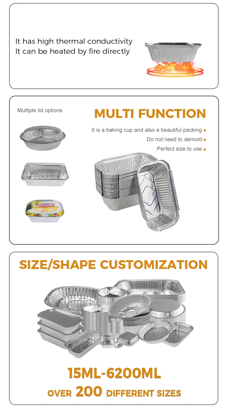 Το 2044 ορθογώνιο ψημένο ρύζι ασημένιο αλουμινόχαρτο αλουμινίου αλουμινίου χονδρικής από τον προμηθευτή αλουμινίου αλουμινίου Yunchu είναι κατάλληλος για διάφορα σενάρια, είτε πρόκειται για υπαίθριο μπάρμπεκιου είτε για οικογενειακή συγκέντρωση. Οι έμποροι μπορούν να προσαρμόσουν τα μοτίβα και την εκτύπωση ανάλογα με τις ανάγκες τους, καθιστώντας την μοναδική επιλογή για τη συσκευασία Takeaway που προσελκύει το μάτι των πελατών. Το δοχείο υποστηρίζει ανοικτή θέρμανση φλόγας και θέρμανση λάμπας λαδιού και διεξάγει θερμότητα ομοιόμορφα, εξασφαλίζοντας ότι το φαγητό θερμαίνεται ομοιόμορφα και δεν είναι εύκολο να κολλήσει στο τηγάνι. Μπορεί να χρησιμοποιηθεί αμέσως ακόμη και όταν τοποθετηθεί στη φριτέζα αέρα και ο κώνος και κυρτός σχεδιασμός στο κάτω μέρος αυξάνει την τριβή και αποτρέπει την ολίσθηση. Οι ενισχύσεις στις πλευρές ενισχύουν την ανθεκτικότητα του προϊόντος, ενώ ο σχεδιασμός του hemming εξασφαλίζει μια άνετη εφαρμογή στο καπάκι, κλείνοντας αποτελεσματικά τη θερμοκρασία του φαγητού.