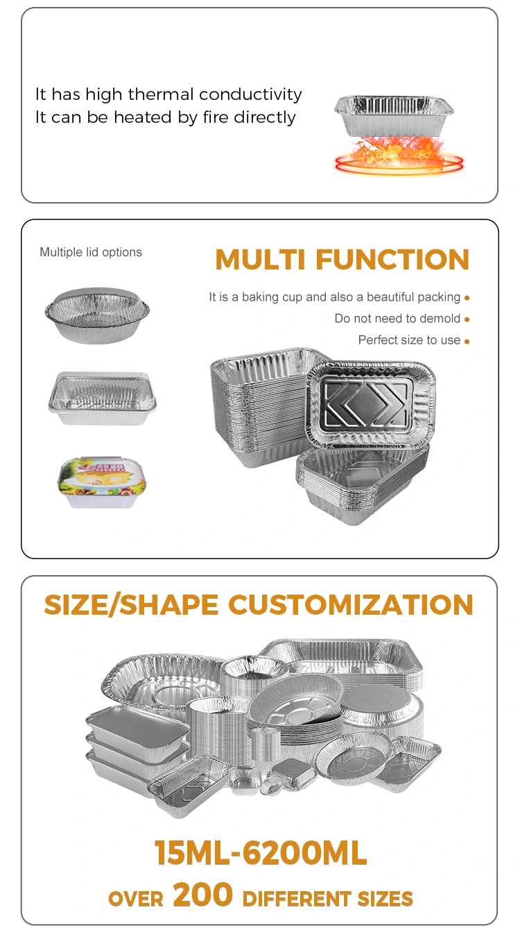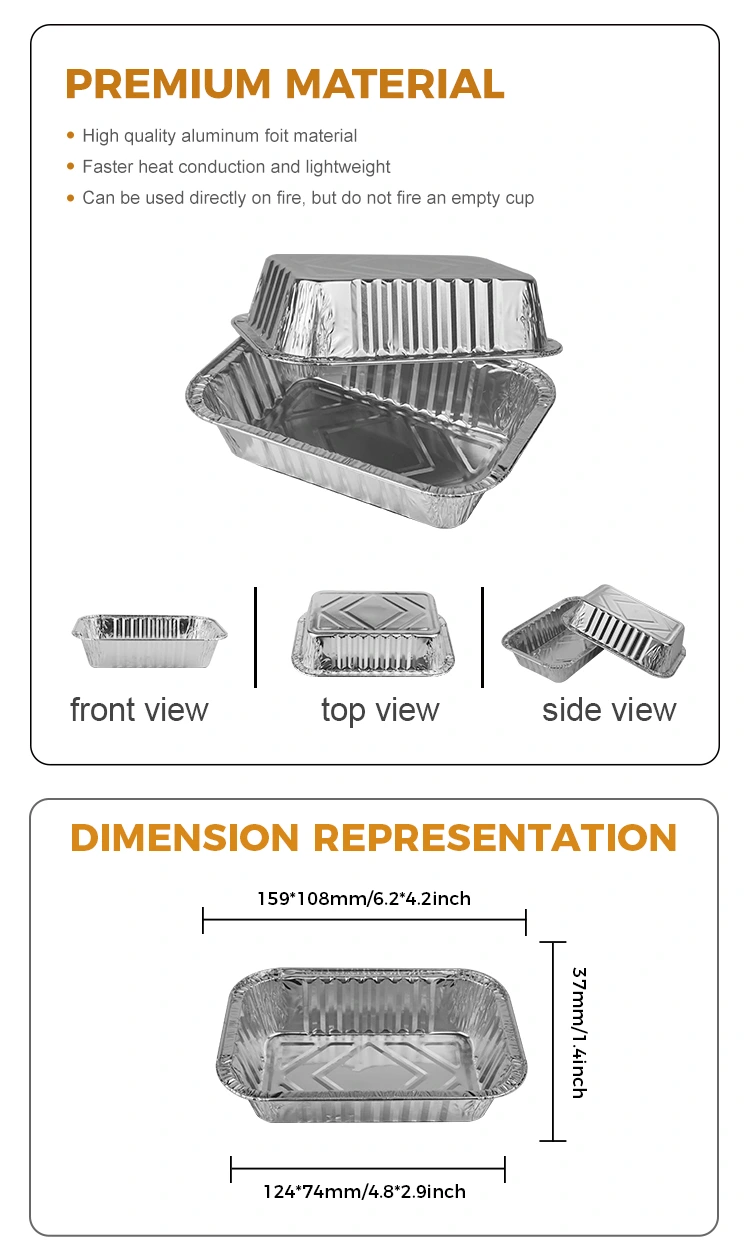 Λόγω του μικρού και ελαφρού σχεδίου του, αυτό το τετράγωνο δοχείο αλουμινίου αλουμινίου από αλουμίνιο είναι ιδανικό για τη μεταφορά και την αποθήκευση τροφίμων, κατάλληλο για τη χρήση και την προσαρμογή των καταστημάτων τροφίμων στα καταστήματα, τα εστιατόρια γρήγορου φαγητού κλπ. Το κοίλο και κυρτό σχέδιο υφής στο κάτω μέρος ενισχύει την τριβή, εξασφαλίζοντας ακόμη και τη διανομή θερμότητας και την αποφυγή της τοπικής υπερθέρμανσης. Είναι μη ολισθητήρα και ανθεκτικό και το κουτί αλουμινίου είναι παχιά και σκληρυμένη, ενισχύει την ικανότητά του να αντέχει την πίεση και παραμένει σταθερή ακόμη και κατά τη διάρκεια της μεταφοράς και δεν είναι εύκολο να παραμορφωθεί.