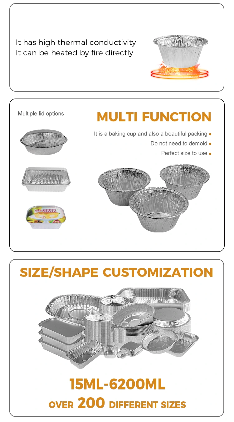 Δεύτερον, κατά τη διάρκεια του ψησίματος, το στρογγυλό κέικ ψησίματος ασημένιο αλουμίνιο αλουμινίου δοχείου δοχείου εμπορευματοκιβωτίων υπερέχει. Έχει καλή θερμική αγωγιμότητα και μπορεί να διανείμει ομοιόμορφα τη θερμότητα κατά τη διάρκεια του ψησίματος, αποφεύγοντας την υπερθέρμανση ή τα καυτά πυθμένα. Ταυτόχρονα, η σταθερότητά του είναι επίσης πολύ καλή, διατηρώντας τη δομική σταθερότητα ακόμη και σε περιβάλλοντα υψηλής θερμοκρασίας και όχι εύκολα παραμορφωτικά.