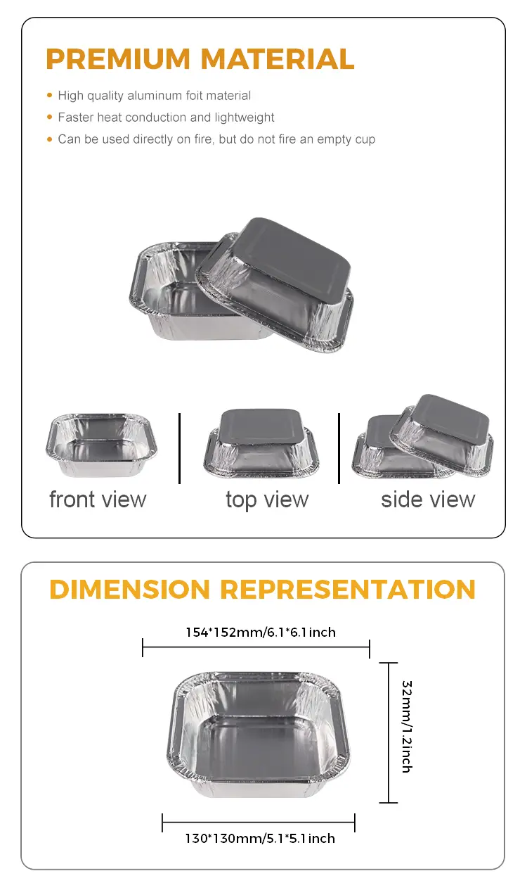 Yunchu αλουμινίου αλουμινίου προμηθευτή τετράγωνο κέικ φριτέρ ασημένια αλουμινίου αλουμινίου δοχεία μπορεί επίσης να χρησιμοποιηθεί ευρέως σε διάφορες σκηνές, όπως: το ψήσιμο φούρνου, η φριτέζα αέρα, η ανοικτή θέρμανση φλόγας, ο ατμομηχανή και ο άλλος εξοπλισμός χρησιμοποιούν ομοιόμορφα αγωγούς θερμότητας, ομοιόμορφη θέρμανση ταυτόχρονα μπορεί να αποτρέψει την επικόλληση μη κολλώδη pan, την απελευθέρωση μούχλα κλπ. Τα μικρά κέικ, το σπιτικό γιαούρτι, η πουτίγκα ζελέ, τα ψημένα αυγά, τα θαλασσινά και άλλα τρόφιμα, το κατώτατο κοίλο και το κυρτό σχεδιασμό, παίζουν έναν μη ολισθητήρα, ο πλήρως καμπυλωτός σχεδιασμός μπορεί να χρησιμοποιηθεί με ένα πλήρως διαφανές καπάκι για να κλειδώσει τη θερμοκρασία και τη γευστική παραγωγή των τροφίμων.