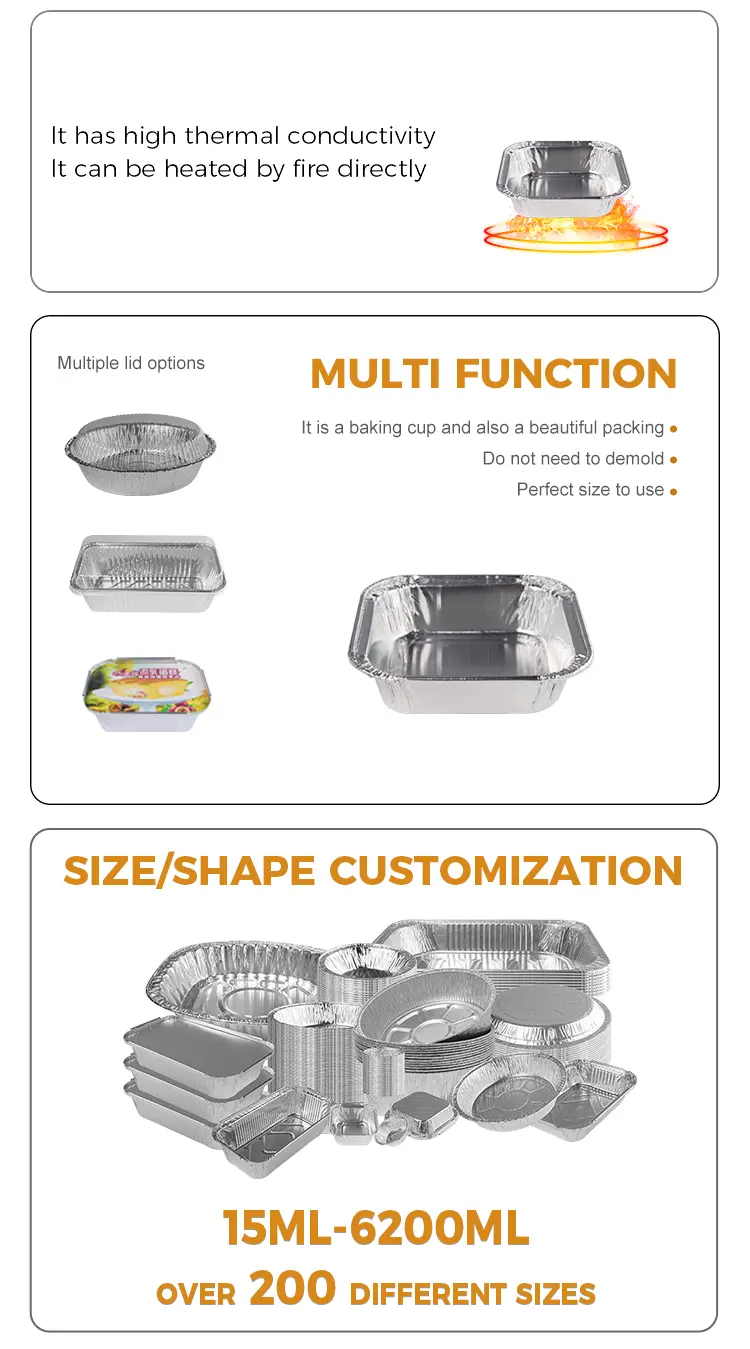 Χαρακτηριστικά: Το μεσημεριανό κουτί χονδρικής που κατασκευάζεται από υλικό αλουμινίου από αλουμίνιο, ασφαλές και υγιές χωρίς καθαρισμό, εύκολο να ψήνετε και να εφαρμόζετε ταυτόχρονα, να πετάξετε χωρίς επιβάρυνση όταν χρησιμοποιείται, μπορεί να επικοινωνήσει απευθείας με τα τρόφιμα, αδιάβροχα και ανθεκτικό σε πετρέλαιο, πυκνωμένη και βαθύτερη, υψηλή αντοχή στη θερμοκρασία, διατηρεί τρόφιμα φρέσκα και νόστιμα.