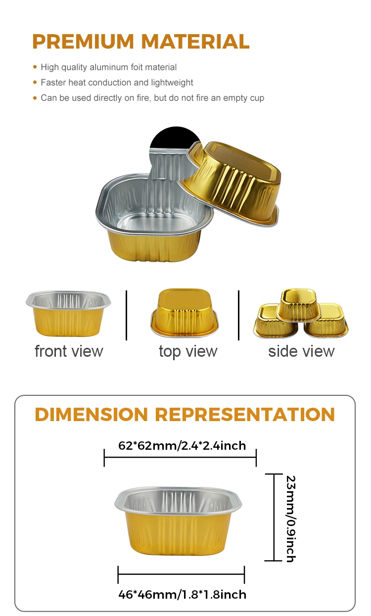 Τετράγωνα κύπελλα ψησίματος για επιδόρπιο Τα δοχεία από φύλλο αλουμινίου με λεία τοιχώματα έχουν ισχυρό πάχος, ισχυρή αντοχή στη διάβρωση, δεν παραμορφώνονται εύκολα και μπορούν να έρθουν σε άμεση επαφή με τα τρόφιμα. Όλα τα προϊόντα έχουν περάσει την πιστοποίηση του συστήματος διαχείρισης ποιότητας ISO 9001 και παράγονται αυστηρά σύμφωνα με τα πρότυπα ασφάλειας υλικών που έρχονται σε επαφή με τρόφιμα της FDA. Είναι εγγυημένα μη τοξικά και άοσμα και μπορούν να χρησιμοποιηθούν με σιγουριά.